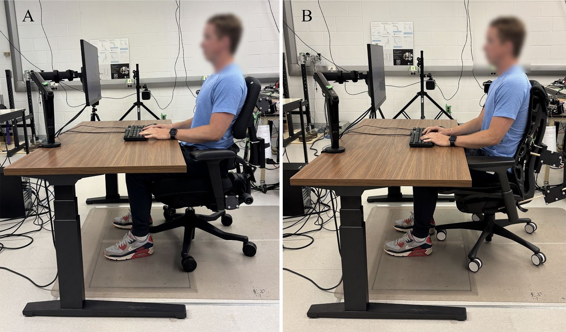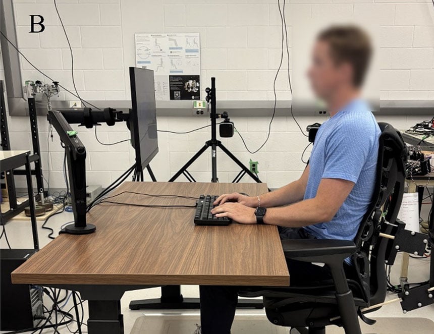 To evaluate how chairs perform with actual people, researchers at the University of Waterloo conducted a comprehensive biomechanical study comparing the Anthros chair to the Herman Miller x Logitech Embody. This study measured spinal posture, pelvic position, seat pressure, pain responses, and productivity during real seated computer work.