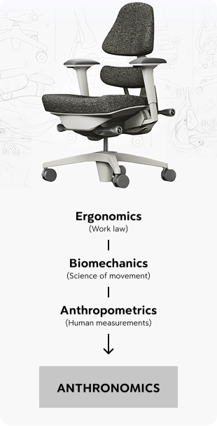 Anthronomics is the understanding and application of biomechanics (science of movement), ergonomics (work law), and anthropometrics (human measurements) in the pursuit of optimal posture and support of the human body in the standing and sitting positions.